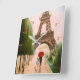 Torre Eiffel - Paris França e Amantes sob o guarda-chuva vermelho - pintura acrílica "Na Torre Eiffel" e projetada com discagens de hora e minuto em qualquer Relógio de Parede Zazzle. #WallClocks #Clock #EiffelTower
