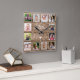 Relógio de colagem de fotos de madeira rustica personalizado com 12 fotos, nomes de netos e 'Nana Nós te amamos' tipografia.