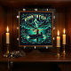 Trata-se de uma ilustração ousada e dinâmica com um tema central da pesca. A design apresenta uma pessoa em um pequeno barco em um lago à noite, cercada por uma impressionante tela de raio elétrico. A frase "NASCER AO PEIXE" é escrita em uma faixa estilizada no topo. Toda a cena é enquadrada por peixes e folhagens brilhantes e decorativos, dando ao trabalho de arte um sentimento poderoso e energético.
