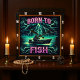 Esta trabalho de arte mostra um pescador destemido num barco, bravando uma tempestade dramática e lindamente colorida num lago. O estilo gráfico ousado e o esquema de cores impressionante de púrpuras, chaleiras e pinks fazem a cena pop com energia. O design é uma ode à dedicação de anjos em todo lugar. A expressão "NASCER AO PEIXE" é escrita a rosa estilizado. Toda a cena é enquadrada por peixes e folhagens brilhantes e decorativos, dando ao trabalho de arte um sentimento poderoso e energético.