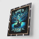 Esta trabalho de arte retrata uma viagem de pesca fantástica num lago tranquilo. Um pescador, lançando sua linha de um barco, é mostrado contra um céu surreal cheio de relâmpagos brilhantes e cores fantásticas e ricas. A imagem é estética ousada e contraste flagrante entre o primeiro plano escuro e o céu brilhante fazem um design cativante. É uma homenagem à paixão pela pesca. A frase "NASCER AO PEIXE" é escrita em cartaz estilizado. Toda a cena é enquadrada por peixes e folhagens brilhantes e decorativos, dando ao trabalho de arte um sentimento poderoso e energético.
