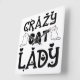 RELÓGIO QUADRADO NEGRO E BRANCO, UMA MULHER DE GATO BRANCO DIZENDO