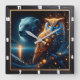 Relógio Quadrado Noite Encantada com Urso e Coruja em Harmonia
