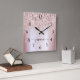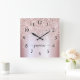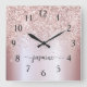 Girly Glam Blush Rosa Dourado Glitter Metálico Nome do Monograma Script Personalizado Relógio de Parede Quadrado. Este design com seu primeiro nome em um estilo bonito, escrito à mão, estilo swash tail tipografia de assinatura em cor rosa pincelada cor-de-rosa azul folha metálica falsa com borda brilhante brilha brilho brilho brilho brilho brilho. Estes são fáceis de personalizar. Excelente presente de inauguração feminina, também para aniversário, dia da mãe, casamento, chá de panela, doce 16 festas de aniversário e chás de fraldas, graduação e é para a garota que ama coisas únicas de na moda de faísca.