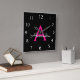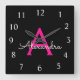 Relógio Quadrado Nome do Monograma Girly Black Script Hot-Pink