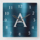 Relógio Quadrado Nome do Monograma Metálico Moderno Azul
