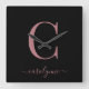 Relógio Quadrado Nome do Script do Monograma Dourado Rosa Minimalis