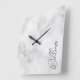 Relógio Quadrado Nome Personalizado do Script Moderno do Marble Bra