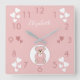 Relógio Quadrado Nome personalizado Pink Teddy Bear