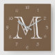 Relógio Quadrado Números de Script Branco do Monograma No Wcn Marro