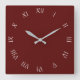 Relógio Quadrado Números romanos de script branco no wcn vermelho