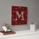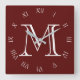 Números romanos do script branco do monograma no relógio de parede vermelha