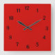Relógio Quadrado Números Vermelhos Sólidos Pretos