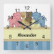 Personalize esta doce imagem de animais empalhados impressa em um relógio de parede, ideal para o berçário de bebês. Basta editar o texto personalizado do nome no editor fácil do Zazzle. Criado em parte com gráficos de Scrappin Doodles em scrappindoodles.com,