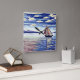 Esta pintura captura o momento em que o barco se põe na água e se afasta da costa. Excelente decoração para sua casa ou escritório.