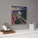 O Gritar também conhecido por Skrik (1893) por Edvard Munch é uma pintura de arte de expressionismo vintage. O Gritar é a obra mais famosa de Munch e uma das pinturas mais reconhecíveis do mundo em arte. Ela foi interpretada amplamente como representando a ansiedade universal do homem moderno. Pintada com grandes bandas de cor de garanhão e formas altamente simplificadas, e empregando um alto ponto de vista, a figura agonizada é reduzida a um crânio de garras nas gargantas de uma crise emocional. Com essa pintura, Munch atingiu seu objetivo declarado de "estudar a alma, ou seja, estudar o meu próprio eu". Munch escreveu sobre como a pintura se tornou: "Eu estava caminhando pela estrada com dois amigos quando o sol se pôs; de repente, o céu ficou vermelho como sangue. Eu parei e me inclinei contra a cerca, me sentindo incrivelmente cansado. As línguas do fogo e do sangue esticaram-se sobre o fiorde preto azulado. Meus amigos continuaram caminhando, enquanto eu ficava para trás, tremendo de medo. Depois ouvi o enorme, infinito gritar da natureza." Sobre o artista: Edward Munch (1863-1944) era um pintor Symbolista Norueguês, impressão e um importante precursor da arte expressionista. Sua composição mais conhecida, O Gritar, faz parte de uma série The Frieze of Life, na qual Munch explorou os temas da vida, amor, medo, morte, melancolia e ansiedade .