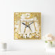 Adicione um pouco de romance e celebração ao seu decoro de arte de parede com um relógio de parede quadrado. Duas taças de champanhe a brindar entre Confetti Dourado - borda de cor dourada. Personalize com o nome, as iniciais, a mensagem, a citação ou qualquer outra coisa que desejar - ou remova completamente. Escolha de cor para as mãos no relógio.
