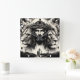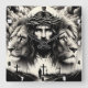 Este impressionante relógio quadrado preto e branco mostra Jesus Cristo vestindo uma coroa de espinhos, flanqueado por dois poderosos leões, simbolizando Sua divindade e força. Uma figura solitária caminha em direção a três cruzes numa colina desolada, colocada contra um céu dramático e nublado, criando uma representação religiosa profunda e comovente.