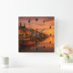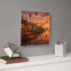 Relógio Quadrado Ouro Sunset Sobre Vila Costeira
