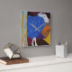 Esta pintura é uma interessante combinação de minimalismo, arte figurativa e desenho abstrato. O latido das árvores, o padrão e o design dos campos circundantes contrastam com as ovelhas clássicas, mas com uma reviravolta como se fosse azul e coberto por padrões de lã em bruto. É como se ela estivesse prestes a viajar, mas ao mesmo tempo aproveitando sua posição perfeita atrás de uma árvore.