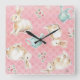 Relógio Quadrado Padrão de Bunnies Springtime