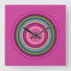 Relógio Quadrado Padrão de Círculo Multicolorido Rosa Quente