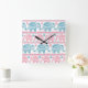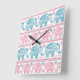 Relógio Quadrado Padrão De Elefante Étnico Rosa E Teal