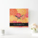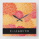 Relógio Quadrado Padrão De Flores, Orange Dahlia, Seu Nome