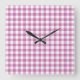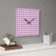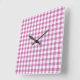 Relógio Quadrado Padrão De Gingham Branco E Rosa Clássico
