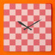 Relógio Quadrado Padrão de Gingham Vermelhos Rosa Verificado