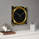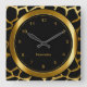 Relógio Quadrado Padrão de Girafa Preta e Dourada Impressão