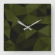 Relógio Quadrado Padrão geométrico preto verde do exército escuro l