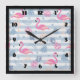 Relógio Quadrado Padrão Whimsical Flamingo & Pineapple