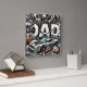 Este gráfico intrincado é uma homenagem detalhada à paixão automotiva, com destaque para o "PAI" em letras em negrito e brancas 3D. O fundo é uma densa colagem de peças metálicas de carros, incluindo engrenagens, engrenagens e pistões. Um carro de corrida branco elegante e bandeiras com controle completam esse tributo mecânico vibrante, perfeito para um pai que ama carros e corridas.