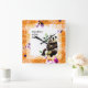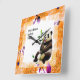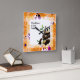 Relógio Quadrado Panda com Quadro de Flor Laranja