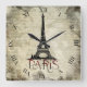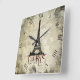 Relógio Quadrado Paris, Eiffel Tower Vintage Script