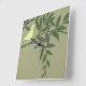 Relógio Quadrado Pássaro Verde Empoleirado no Ramo Verde
