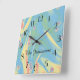 Um fundo azul pastel e amarelo, e pequenos corações cor-de-rosa, decoram este relógio de parede com nome personalizado. O relógio de parede pode ser redondo ou quadrado. Que presente maravilhoso para um noivado, casamento, chá de panela ou novo lar. Todos os Direitos Reservados © 2015 Alan & Marcia Socolik.
