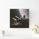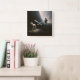 Um brilho suave destaca uma cena surreal de um carneiro perdido em terra rochosa, com um pastor atrás de um funcionarios