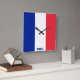 Relógio de Parede Patriótico da Bandeira Nacional da França com a bandeira do país nas cores nacionais impressas o tempo todo. O nome do país é sutilmente integrado no design na parte inferior. O texto é totalmente personalizável usando "Personalizar!" característica. Este design charmoso é o presente espantoso e a peça do espetáculo de excelente na parede. © 2022 PaísesDoMundo