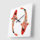 Relógio Quadrado Peixe-Koi Vermelho, Branco e Preto