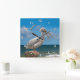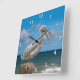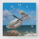 Relógio Quadrado Pelicano branco em uma rocha