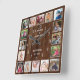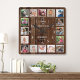 Relógio Quadrado Personalized 16 Photo Collage Quote Dark Wood