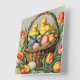 Pintinhos de Páscoas bonitas e antiquadas sentados em uma cesta cheia de ovo com tulipas vibrantes ao redor. Este Relógio de Parede Quadrado fornece a quantidade certa de nostalgia para a sua cozinha de Páscoa esta primavera.