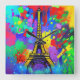 Uma representação colorida e vibrante da Torre Eiffel em Paris, França. A imagem é uma mistura de realismo e arte abstrato, com a Torre Eiffel sendo o ponto focal. O fundo está cheio de cores brilhantes e formas geométricas.