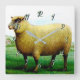 Uma pintura tênue de ovelha ou borrego num campo ou pastagem de erva verde macia. Os números são opcionais.