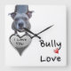 Relógio Quadrado Pitbull Bully Love Wall Clock