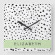 Relógio Quadrado Pontos Dalmáticos, Pontos, Preto e Branco, Seu Nom