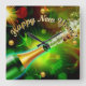 10,75" x relógio de parede acrílico de 10,75" com uma imagem festiva de champanhe lançando de uma garrafa recém-passada, em meio a confetti e luzes verdes, vermelhas e de férias douradas. As órbitas Douradas marcam as 12, 3, 6 e 9 posições. Dica: Para tornar as mãos mais visíveis, e para acentuar a beleza deste relógio, pinte-as de ouro. Consulte a coleção inteira de Relógios de Ano Novo na categoria HOME na seção HOLIDAYS.