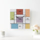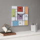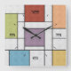 Cores brilhantes e escuras são o destaque deste relógio de parede inspirado em Mondrian.